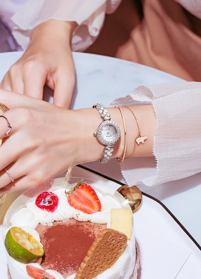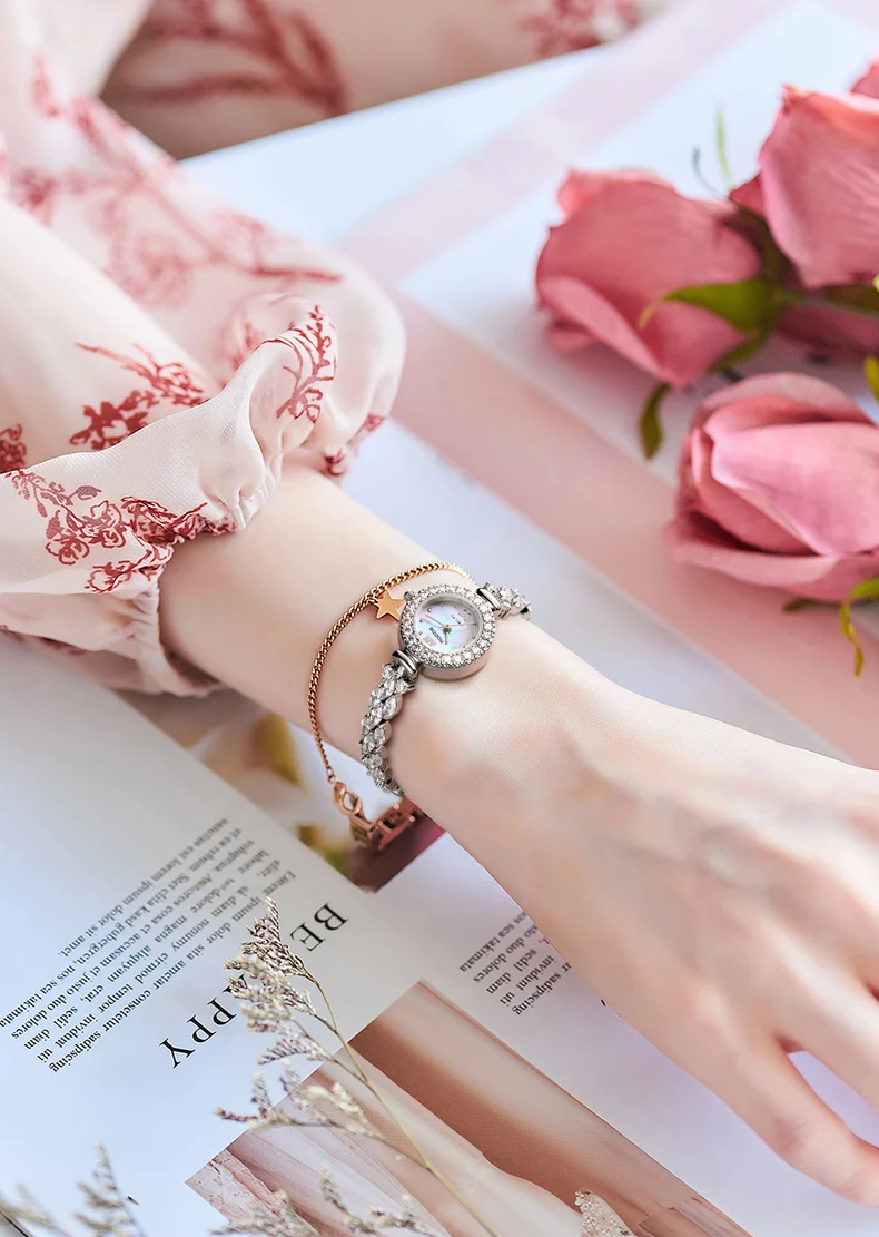 DESCRIPTION: [Ladies' watch] A delicate, small and extremely elegant watch that will make you feel like a mermaid swimming in the ocean. Case size: 23mm in diameter, 9mm in thickness.