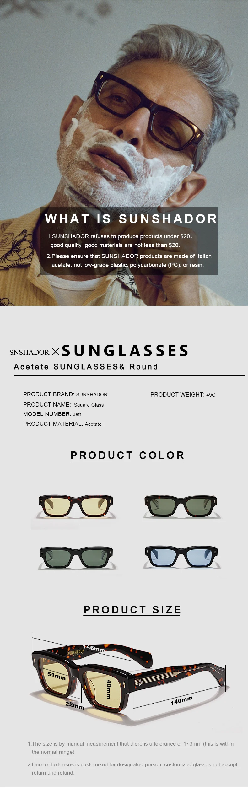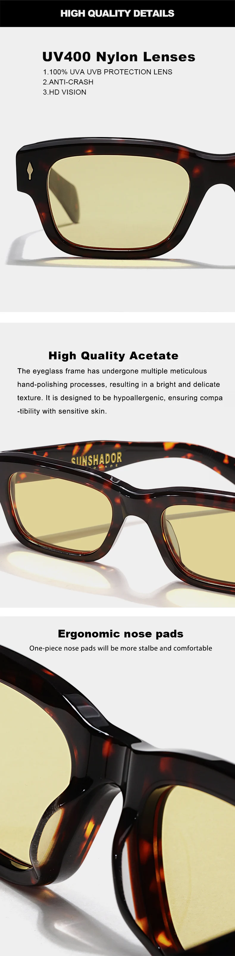 Luxury Designer Sunglasses for Men Acetate Handmade Top Quality Glasses